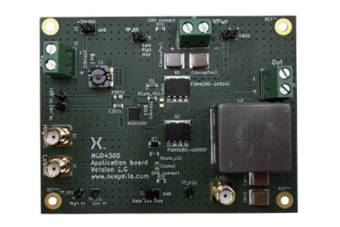 NGD4300 application board  is designed for evaluating NGD4300, which is a 120V High-side and Low-side gate driver with 4A source and 5A sink peak current capability. This application board can be used to evaluate the behavior and performance of the gate driver in a buck converter environment.